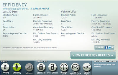 I got the new report this morning and they've added the economy information that has been promised for awhile. I have a low tire alert as well, with 2 tires registering 32 PSI. But the excitement here, just like with the country, is all about the economy... well, fuel and electric mileage economy at least.